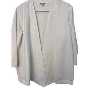 Talbots White Cotton Open-Front Cardigan Sweater Size M GUC 7421 3/4 sleeve