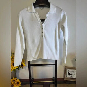 Talbots White Crew Neck Sweater with Open-Weave Pattern 100% cotton long sleeves