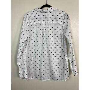Talbots White Long Sleeve Polka Dot button up top 100% Cotton Women size Large