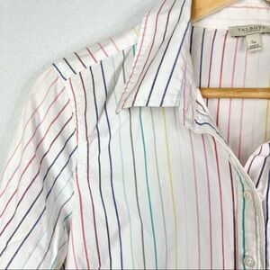 Talbots White Pastel Stripe Button Down Dress Long Sleeve