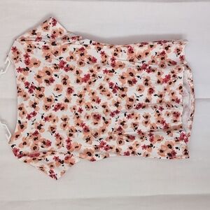 🍉 Talbot's White Peach Floral Tencel Cap Sleeve Ruched Front Tee Size Medium