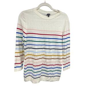 Talbots White Rainbow Striped Medium Sweater Cashmere Lightweight