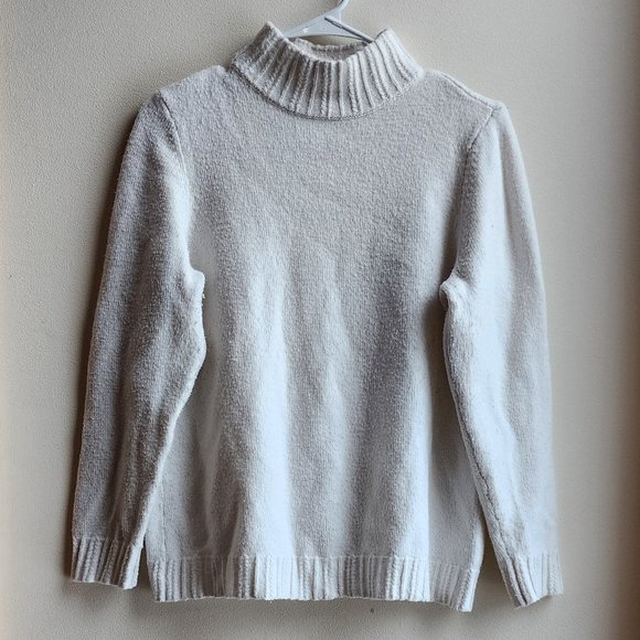 Talbots White Ribbed Turtleneck Sweater Size Large
