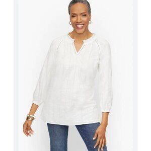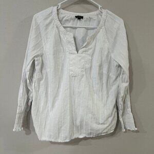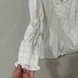 Talbots White Seersucker Ruffle Long Sleeve Blouse Top Women’s Size Medium