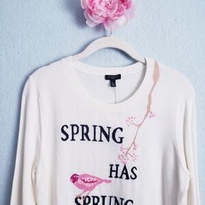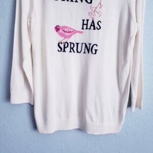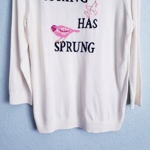Talbots White Spring Has Sprung Embroirded Bird Cotton Sweater