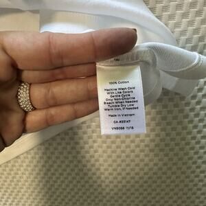 This lot of two Talbot's white tee shirts are a classic style activewear top perfect for women in size large petite. Made of breathable cotton knit fabric, this pullover shirt features a round neck and short sleeves, making it comfortable for everyday wear. The solid color and simple design make it versatile for various occasions, while the machine washable care instructions ensure easy maintenance. With its quality construction and reputable brand, this Talbot's tee shirt is a stylish and practical addition to any woman's wardrobe.