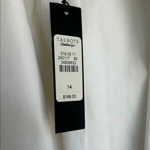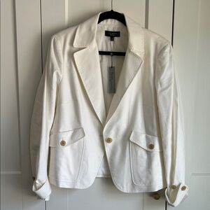 Chic cream blazer by Talbots. Features buttoned pockets and tailored fit. Ideal for professional or casual wear.