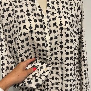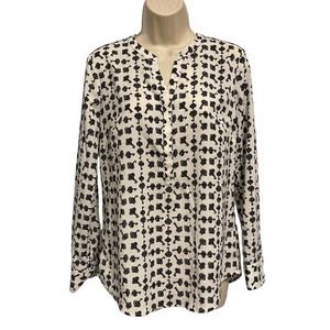 Talbots White with Black Key 3/4 Button Up Blouse Size Small