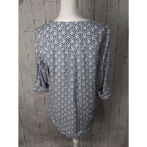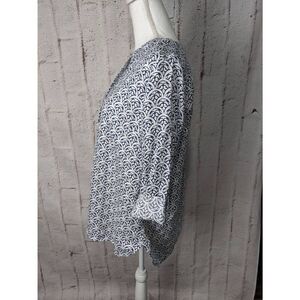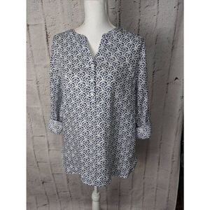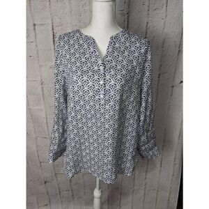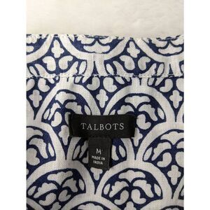 Talbots White Blue Linen Half-Button Long Sleeve Blouse Shirt Top Sz M Medium