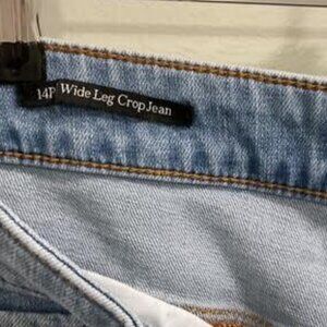 Wide leg crop jeans. Waist is 17" Inseam is 21.5" (Approx.)