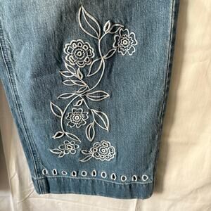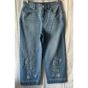 Talbots Wide Leg Crop Jeans Floral Embroidery Size 4