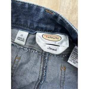 The product is a pair of Talbots wide-leg jeans in a size 12, made from a blend of cotton and spandex. The jeans feature a relaxed fit, making them comfortable for everyday wear. The medium wash color and wide-leg style add a trendy touch to any outfit. Perfect for women looking for a versatile and stylish addition to their wardrobe.