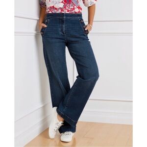 Talbots Wide Leg Sailor Jeans High Rise Full Length Buttons Size 12