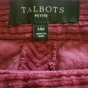 Elevate your wardrobe with this stunning Talbots skirt in a beautiful burgundy color. Made of high-quality cotton corduroy material, this short A-line skirt features a solid pattern with front faux pockets and a side zip/button closure. Perfect for casual occasions in fall and winter, this petite size 14 skirt is machine washable for easy care. The skirt length is short, making it a great choice for pairing with your favorite boots or heels. The Talbots brand is known for its exceptional quality and attention to detail, making this skirt a must-have for any fashion-forward woman.