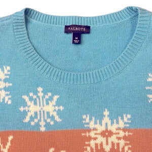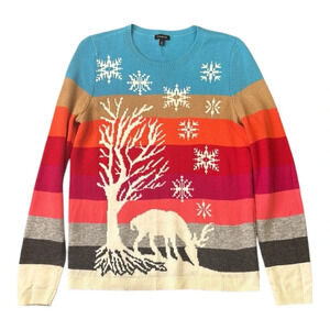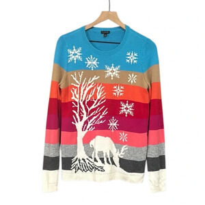 Talbots Winter Scene Striped Lambswool Blend Long Sleeve Crew Neck Sweater M