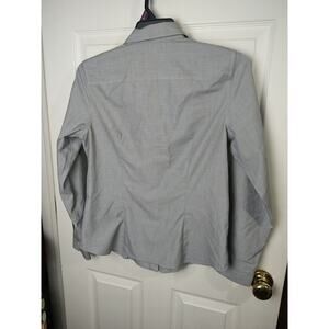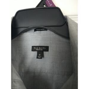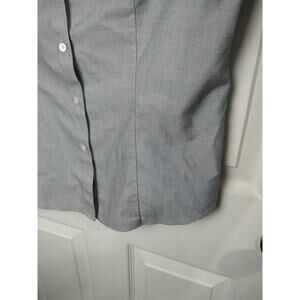 Talbots Woman 10 Shirt fitted Grey V Neck Collared Button Prof Core Long Sleeve