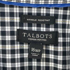 Talbots Woman 16W Petites Wrinkle Resistant Button Up Shirt Black White Gingham