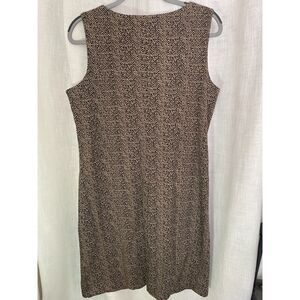 Talbots Woman size 1X sheath dress in a lighter weight ponte fabric. Versatile black and tan herringbone print pairs with many color options. Wear this sleeveless dress under a cotton cardigan now, or as a layering piece as the weather gets cooler. Pull over style. Perfect for work, business casual or everyday wear. Excellent used condition, non-smoking home.