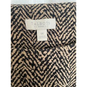 Talbots Woman 1X Sheath Dress Black Tan Herringbone Print Plus Size Workwear EUC