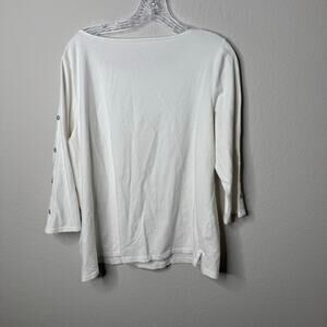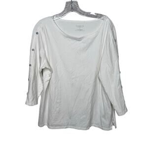 Talbots Woman 1X White Button Shoulder 3/4 Sleeve Top Cotton Stretch Nautical
