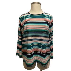 Talbots Woman 3X Petite 100% Cotton Multicolor Stripe Knit Top Casual Chic