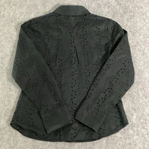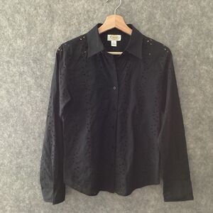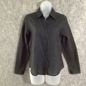 Talbot's Woman Black Eyelet Blouse Button Front Long Sleeves Size 6 Cotton