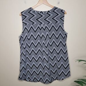 Talbots Woman | Black & White Herringbone Zig Zag Sleeveless Tank Blouse Size 1X