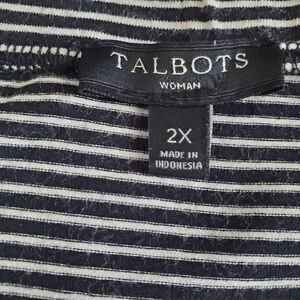 This is a Talbots Woman Black & White Striped Jersey Knit Pull-On Midi Skirt Size 2X