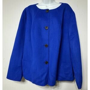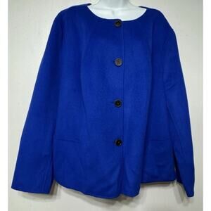 Talbots Woman Blazer Double Faced 90% Wool, 10% Nylon royal blue jacket. Women’s plus size 24W. Soft brushed wool. New without tags. Still has extra button attached. Non smoking home. Two front pockets.