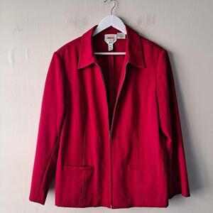 Talbots Woman Blazer Full Zip Long Sleeve Collared Unlined Red Womens Size 12W