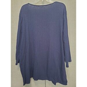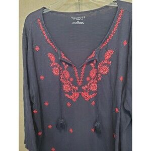 This is a Talbots Woman Blue Slub Knit Embroidered Tie-Neck Tasseled Peasant Top Size 3X