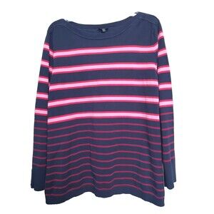 Talbots Woman Blue Striped Crew Neck Long Sleeve Pullover Sweater Size 3X