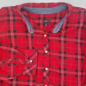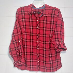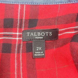 Talbots Woman Cotton Button Up Plaid Roll Tab Sleeves Shirt Size 2X Blue Cuffs