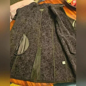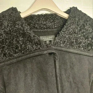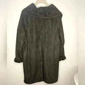 Talbots Woman Faux Suede Sherpa Lined Black Long Coat Sz 18 EUC Winter