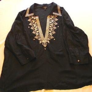 EUC navy tunic with cream embroidery. Perfect for summer.