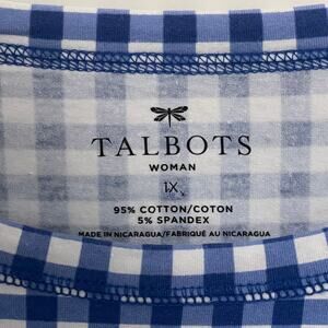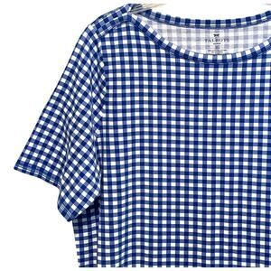Talbots Woman Gingham Tee Womens Size 1X Blue & White Checked Cotton Preppy Top