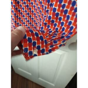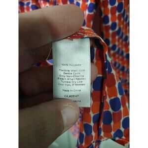 Talbots Woman M Blouse Red Blue Plpolka Dot Long Button Sleeve Semi Sheer