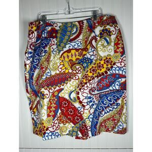 Talbots Woman Multicolor Paisley Print Cotton Blend Skirt Size 20W office sirens