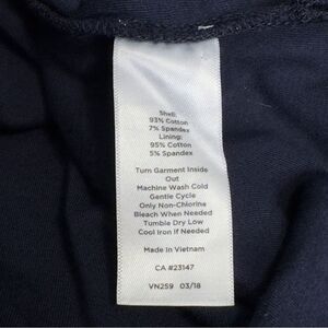 Fabric Detail: Shell: 93% Cotton 7% Spandex Lining: 95% Cotton 5% Spandex