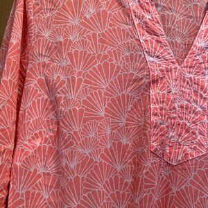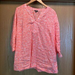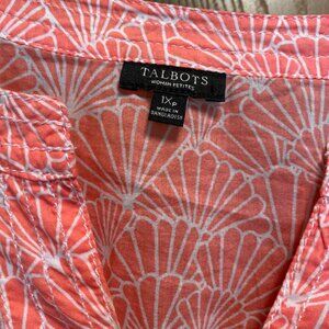 Talbots Woman Petite Peach and White Shell Print 3/4 Sleeve V Neck Top 1Xp