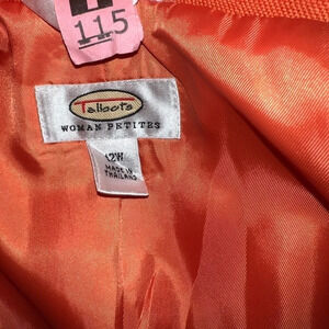 Talbots, Woman Petites, 12W, tangerine linen pocketed blazer 2 button closure