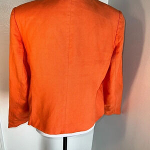 Talbots, Woman Petites, 12W, tangerine linen pocketed blazer with 2 button closure. Sleeves=22”, pit-pit=22@, L=22” 100% linen