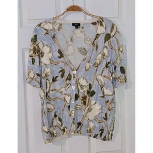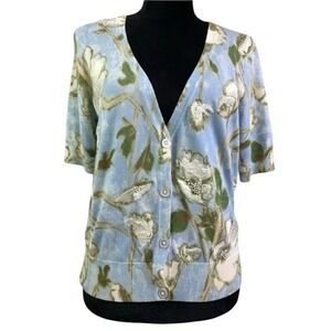 Talbots Woman Petites Floral Beaded Short Sleeve Cardigan Sweater 1XP