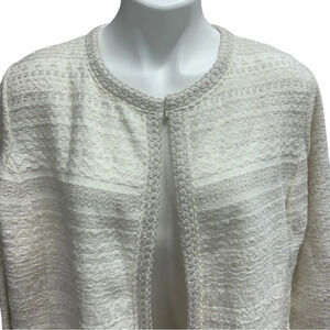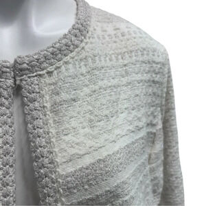 Talbots Woman Petites Ivory Metallic Stripe Textured Knit Open Front Cardigan
