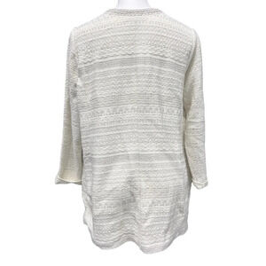 Talbots Woman Petites Ivory Metallic Stripe Textured Knit Open Front Cardigan