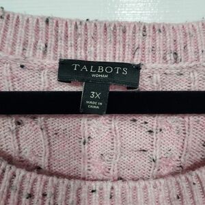 Talbots Woman Pink Cableknit Crewneck Sweater in Size 3X