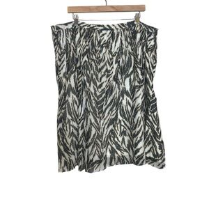 Talbots Woman Plus Skirt Animal Print Black Cream Side Zip Lined Fit Flare 20W