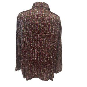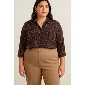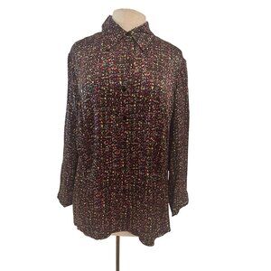 Step into effortless sophistication with this Talbots Woman Pure Silk Button-Down Blouse, crafted from 100% silk for that smooth, breathable, and drapey feel that never goes out of style. The fabric features a rich mosaic-inspired abstract print blending shades of berry, plum, olive, and gold — a striking palette that transitions beautifully from fall to spring.
