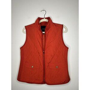 Talbots Woman Quilted Vest Red Orange Pockets Casual Full Zip Size Medium