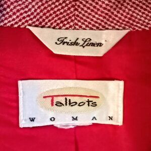 Fully-lined button-down Irish linen vest from Talbots Woman in red check print.
